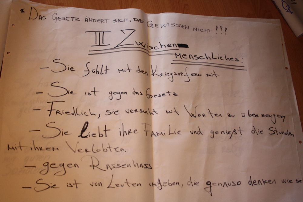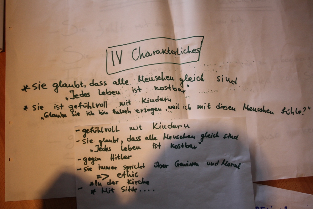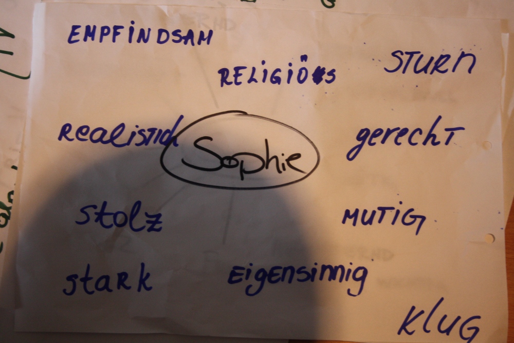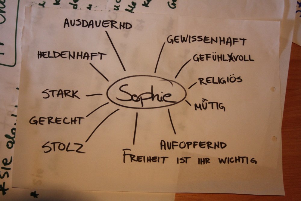 - Hausübungen: Verfasst den Teil der Charakterisierung, den ihr in der Stunde erarbeitet habt. Verwendet nicht nur die Notizen, die ihr gemacht habt, sondern analysiert das Gespräch weiter, sucht Zitate aus dem Gespräch zwischen Mohr und Sophie heraus, die eure Vermutungen zu Sophie belegen. Arbeitet zudem einige weitere Punkte aus dem Film heraus, an die ihr euch noch erinnern könnt.
